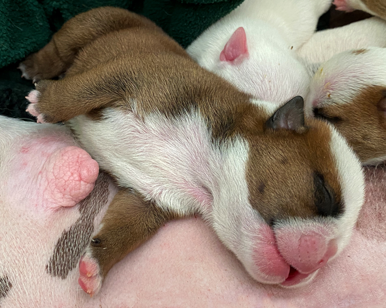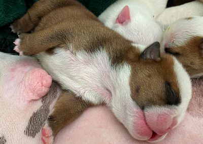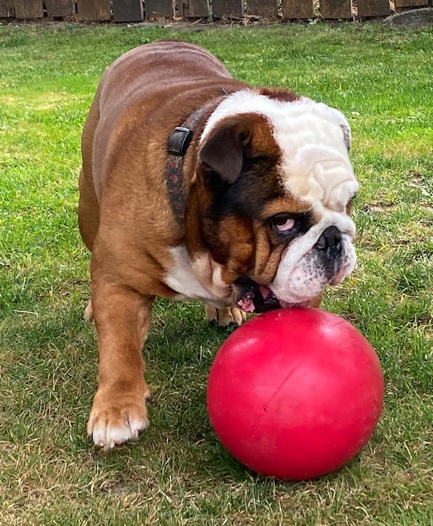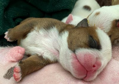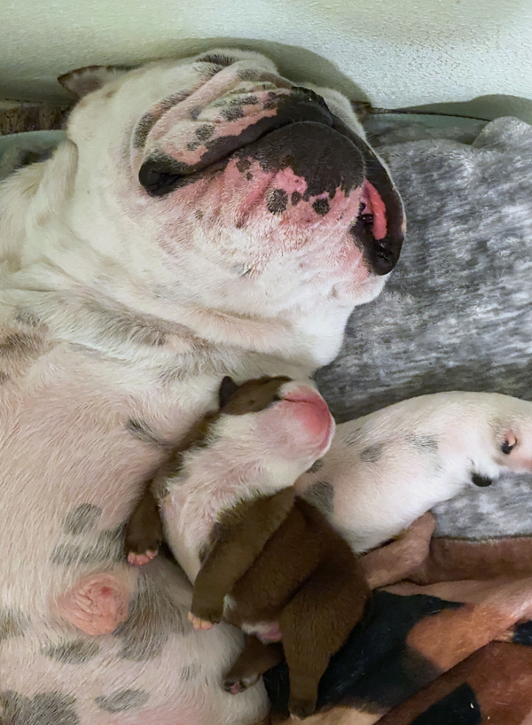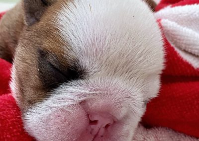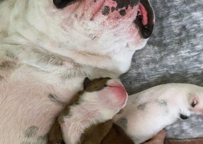 This deep red bundle of energy is super athletic and rarin’ to go, but unfortunately some unexpected health issues for his co-owner as well as their remote location put his performance career on hold for several years. Nonetheless this boy pulled it together when given the chance and aced four titles in less than two weeks time which also earned him a BCA Versatile Bulldog Award! Working with RedG (pronounced “Reggie”) is akin to lassoing a tornado but we hope to see this rambunctious rascal out in several other performance venues in the coming years!