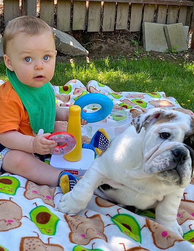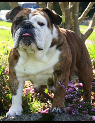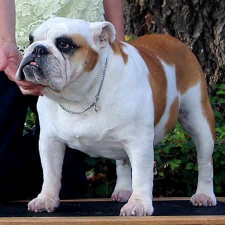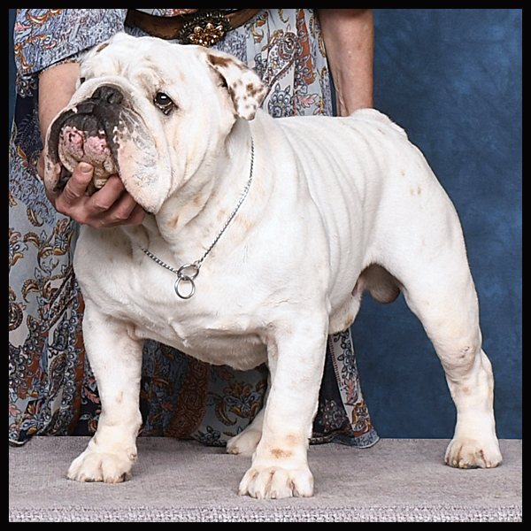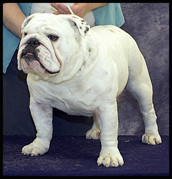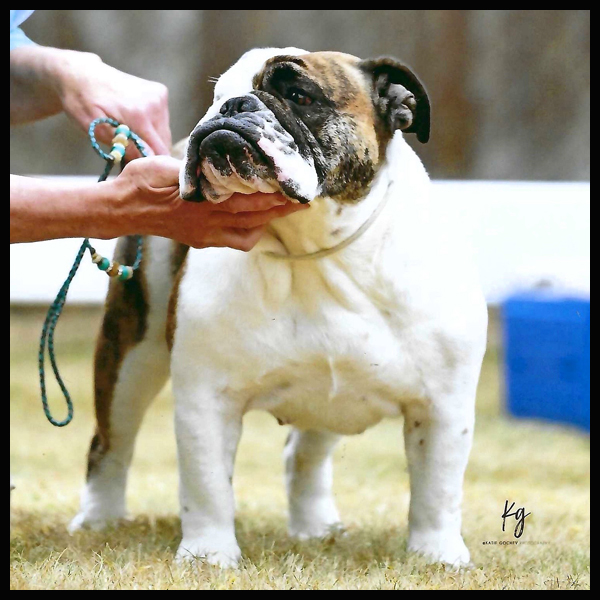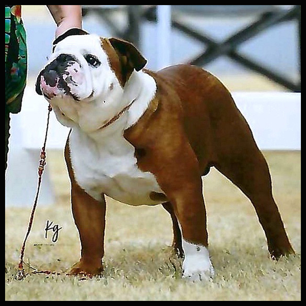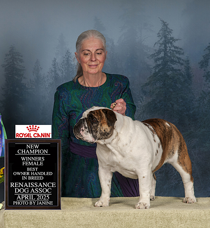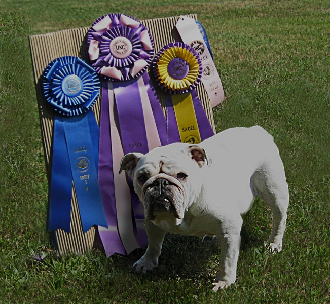 Moxie, in the photo, earned a Reserve Best In Show at a UKC Show when she was an 8.5 year old veteran! Moxie is the only Sittingbullies to earn a UKC Championship.